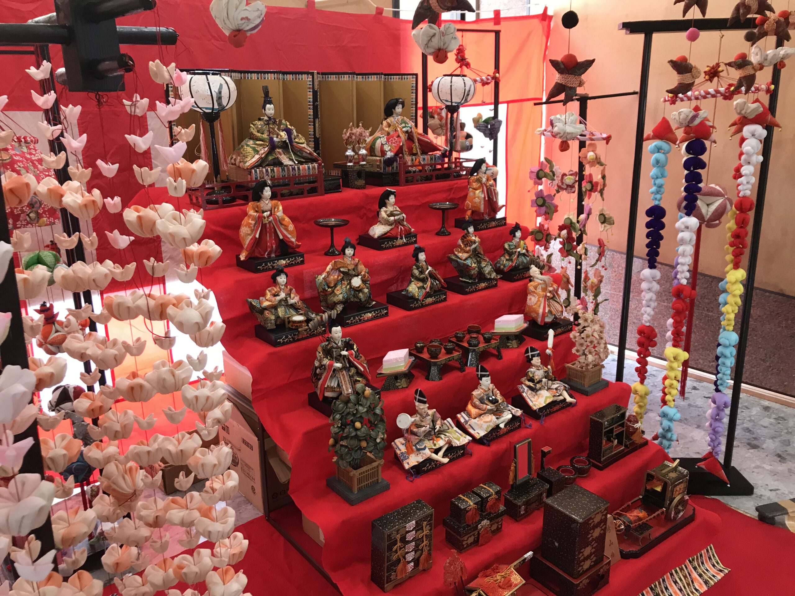 調べものがあるたびに足を運ぶ、まちの図書館。今日ロビーに入ると華やかな雛飾りが目に飛び込んできました。